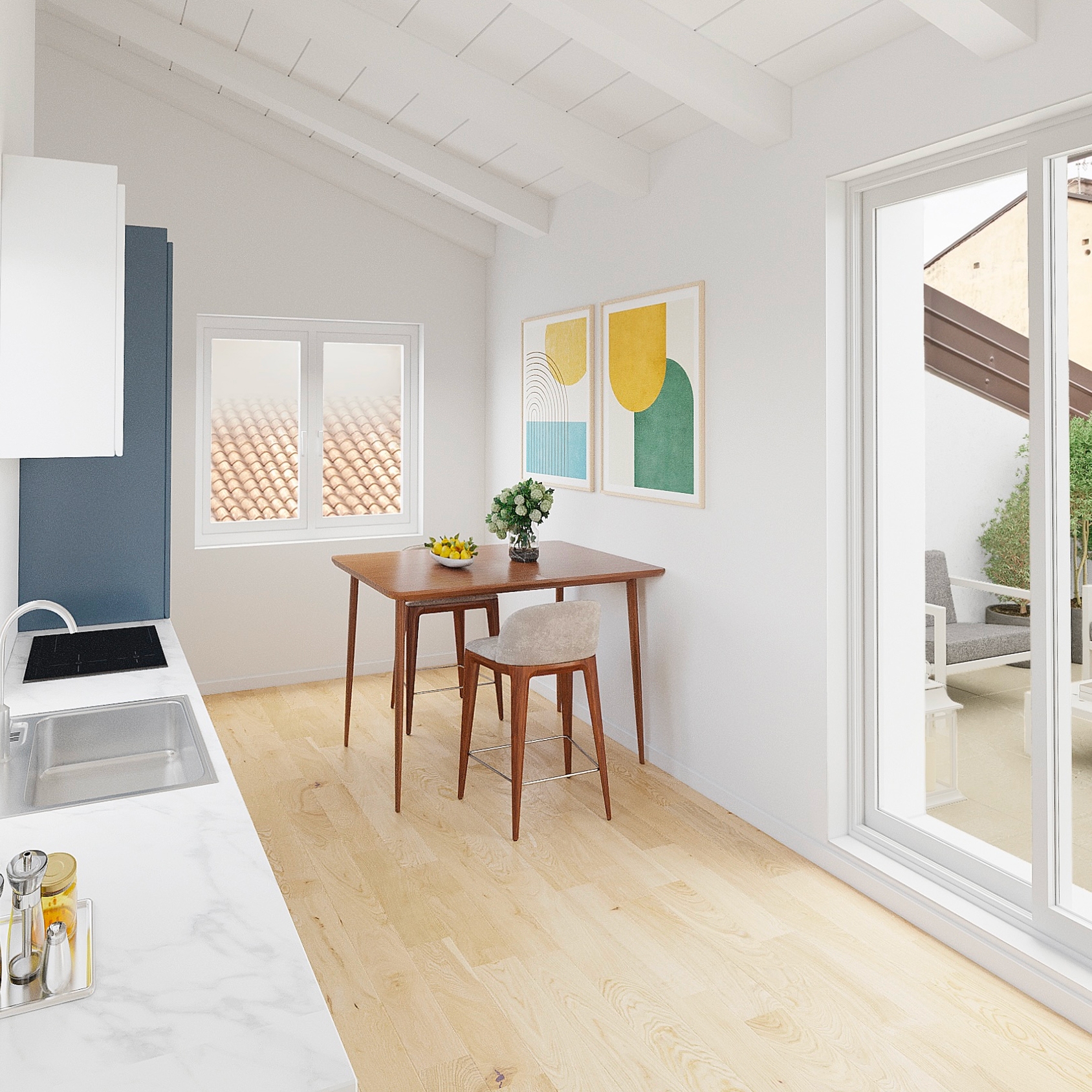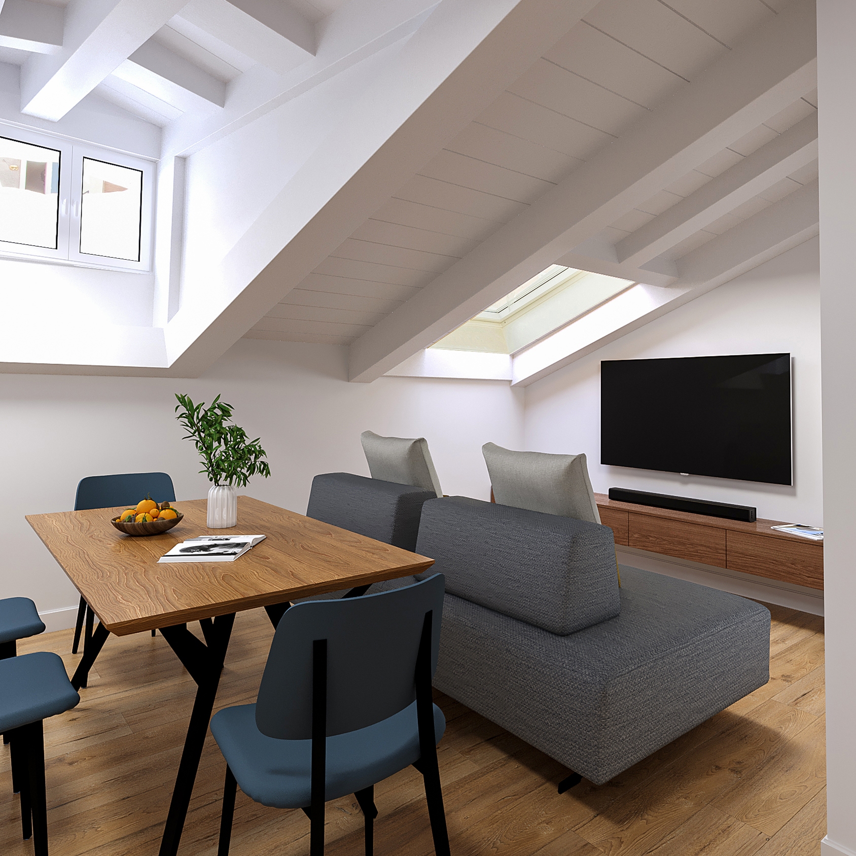 Servito da ascensore fino al piano immediatamente inferiore, con accesso tramite scala interna di tre rampe